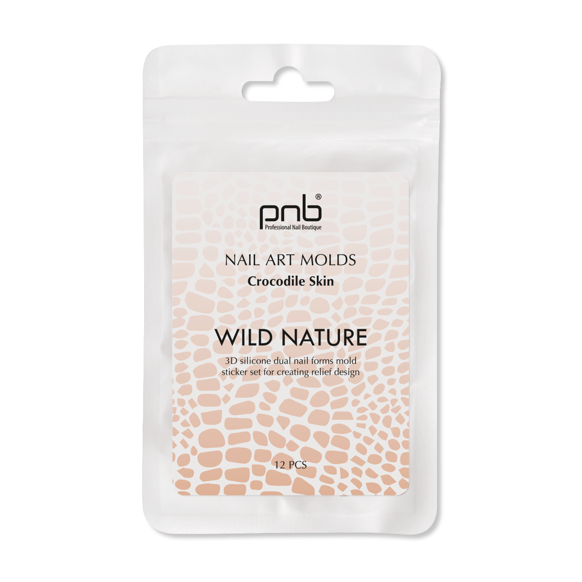 PNB Silicone molds for top shapes Wild Nature Nail Art Molds, Crocodile pattern, 12 pcs