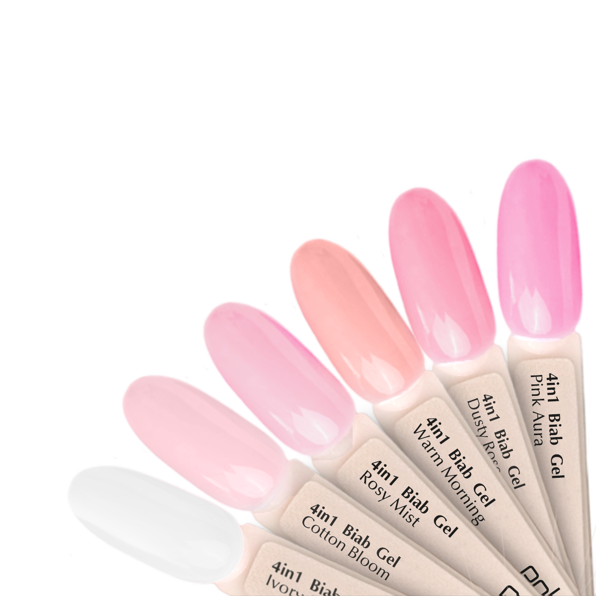 2* 4 in 1 BIAB Gel PNB galima naudoti ir su įprastomis gelio sistemomis (iš buteliuko), jei naudojamas primeris ir elastinga bazė kaip pagrindas.