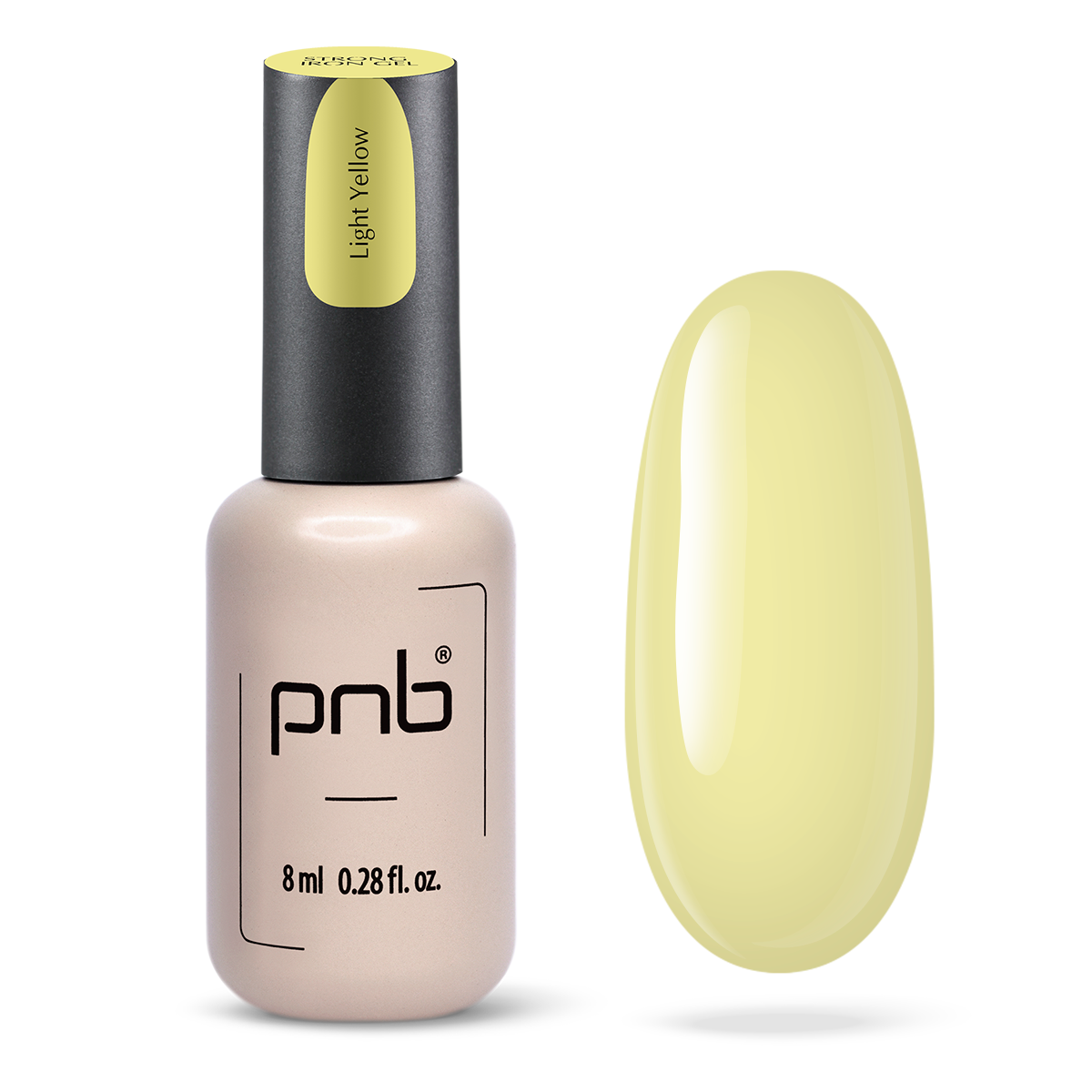 Jei reikia, uždėkite formas. Užtepkite ploną UV/LED Strong Iron Gel PNB sluoksnį, nekietinant įlašinkite gelio lašelį į apex zoną ir paskirstykite per visą nagą.