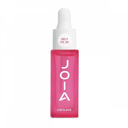 Brut Oil 24С JOIA vegan formulėje esantis vitaminų E kompleksas, vynuogių sėklų, persikų, sojos ir argano aliejai suteikia momentinį drėkinimą ir gilų vitaminų papildymą. Šio grožio produkto sudedamosios dalys papildo viena kitą ir veikia sinergiškai. Kaip tikras grožio eliksyras, sausas aliejus akimirksniu paverčia odą švelnia ir prižiūrėta.