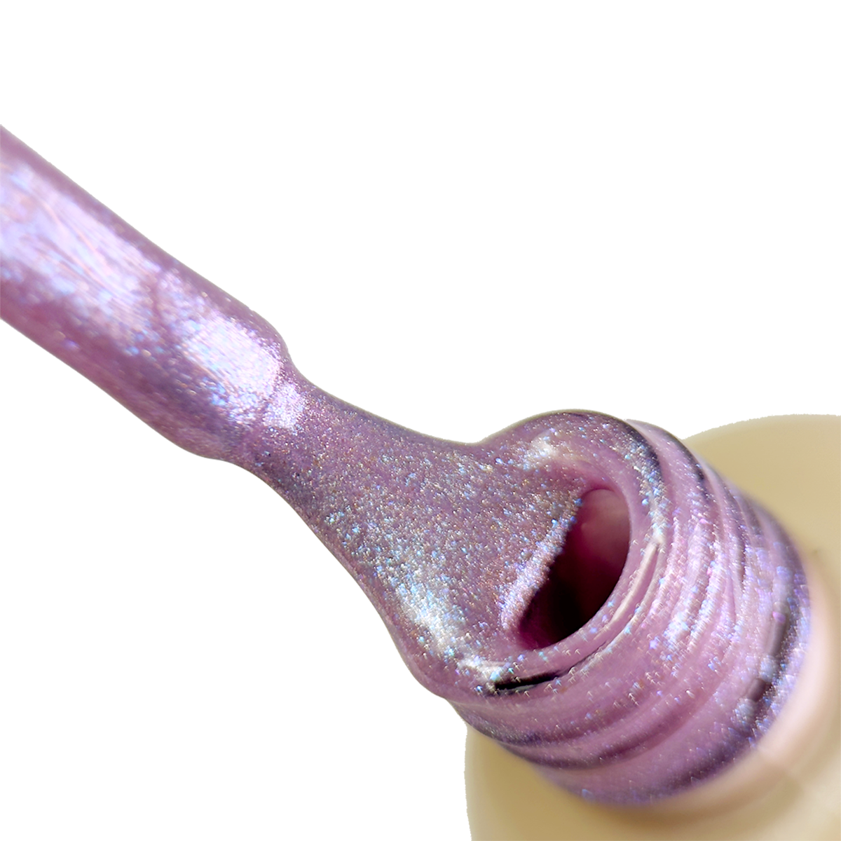 Užtepkite magnetinį gelinį laką 1 arba 2 sluoksniais, priklausomai nuo norimo efekto (1 sluoksnis – permatomas efektas, 2 sluoksniai – sodresnė spalva). Norėdami pakeisti atspalvį, galite naudoti spalvotą bazę. Kietinkite LED arba UV/LED lempoje 60 sek.