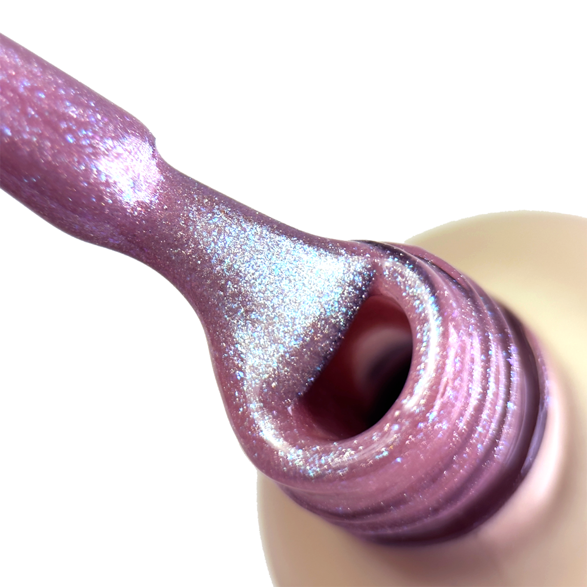 Užtepkite magnetinį gelinį laką 1 arba 2 sluoksniais, priklausomai nuo norimo efekto (1 sluoksnis – permatomas efektas, 2 sluoksniai – sodresnė spalva). Norėdami pakeisti atspalvį, galite naudoti spalvotą bazę. Kietinkite LED arba UV/LED lempoje 60 sek.
