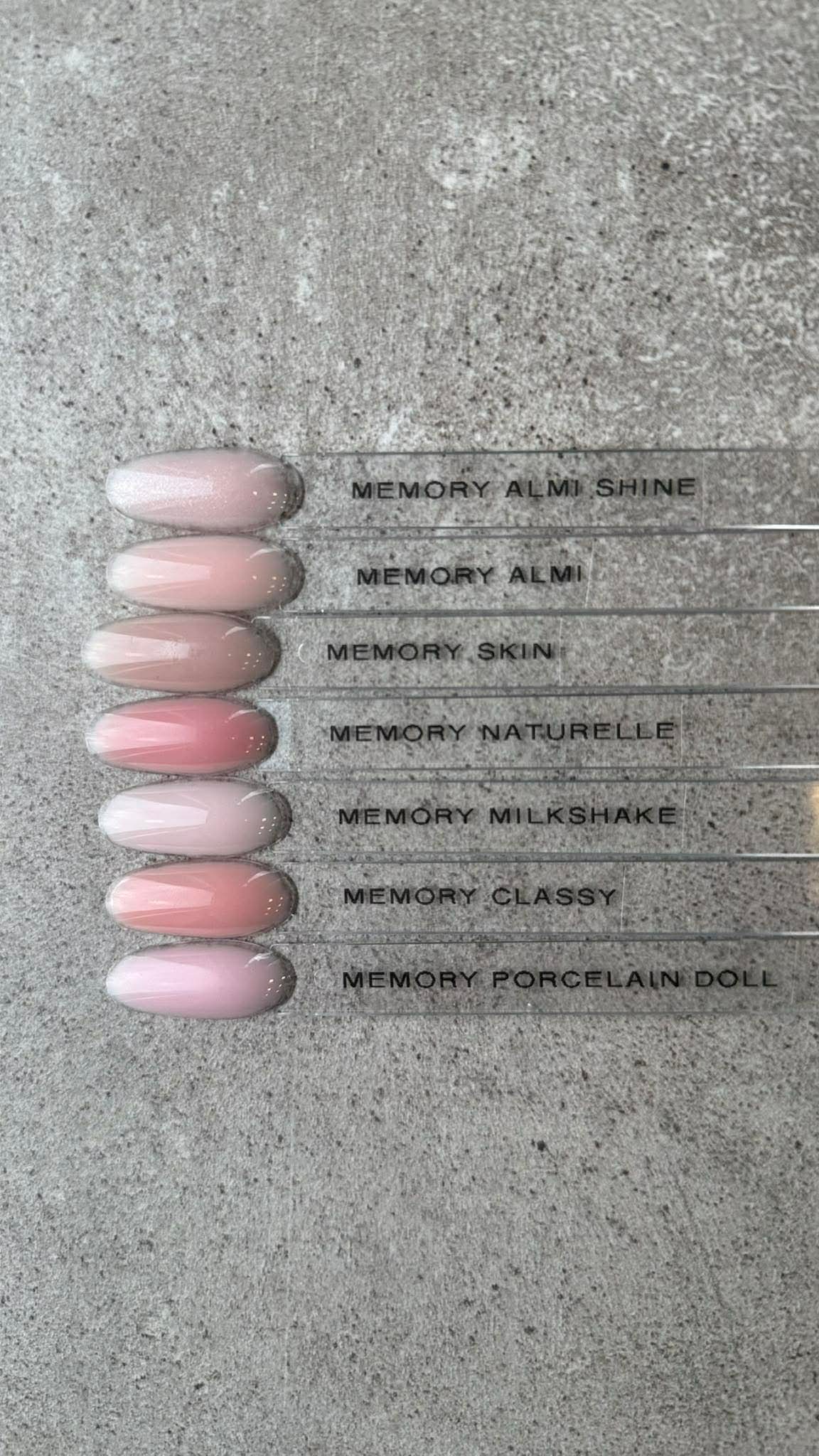 Tai savaime išsilyginantis, maskuojantis gelis nagams su memory funkcija, dėl kurios gelis išsilaiko ant nago plokštelės ir nenubėga į nago plokštelės šonus. Šis gelis tobulai tinka nagų priauginimo procedūrai, nagų korekcijai ir/ar natūralių nagų sutvirtinimui. Memory gelis pasižymi ypatingai legvu modeliavimu, maloniai ir minkštai dildžiuojasi.